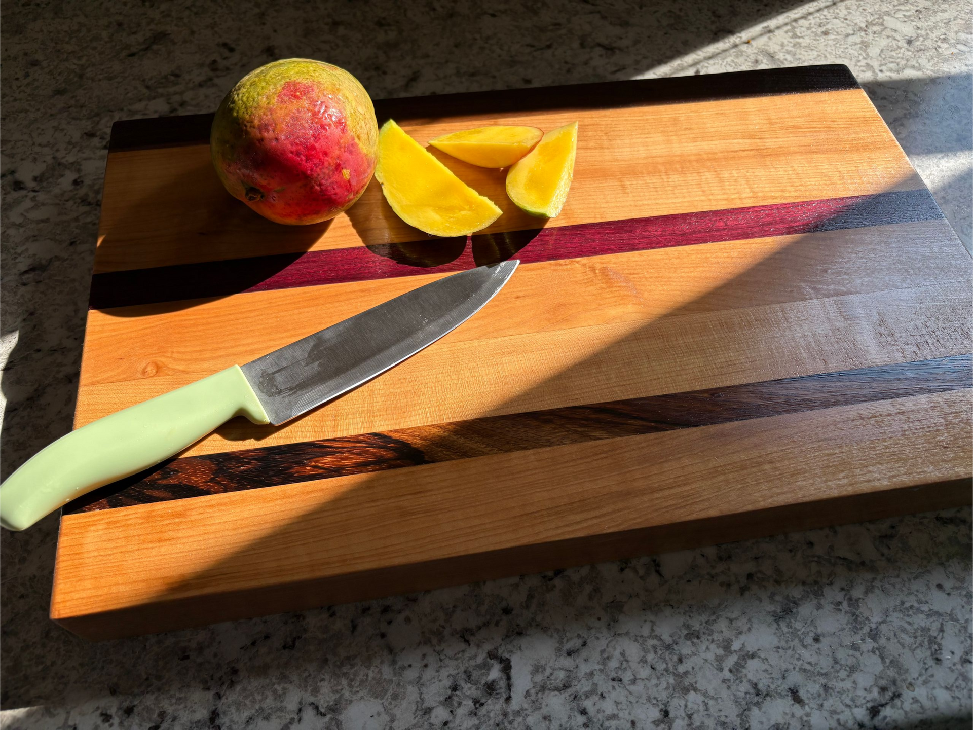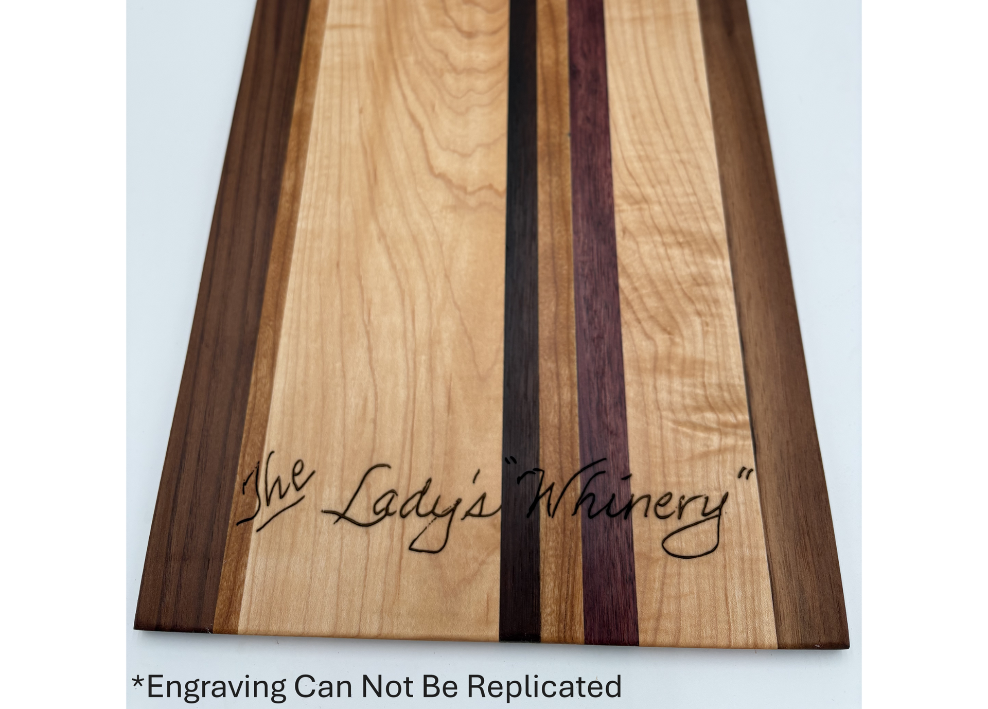 We proudly craft cutting boards, charcuterie boards, and cheese boards from high-quality Virginia hardwoods like Walnut, Maple, and Cherry. These woods offer durability and stunning natural colors.