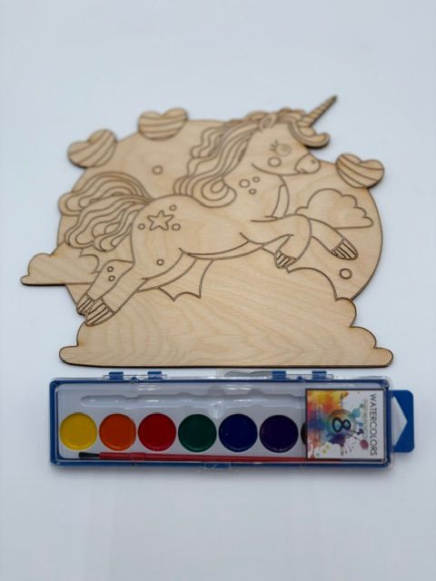 Each kit comes with an 8 watercolor pallet and brush, 1 design cut-out and base to proudly display on any flat surface.