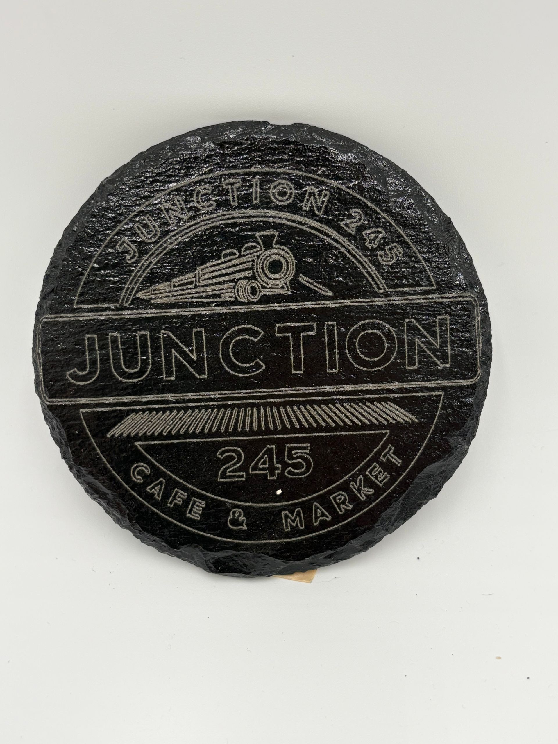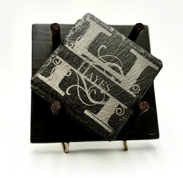 Our coasters come in either 4" round or 4"x 4" square black slate or 4" round wood and all can be personally engraved via laser to add that special unique personal touch. Orders can come with wood base if requested through contacting BRHA